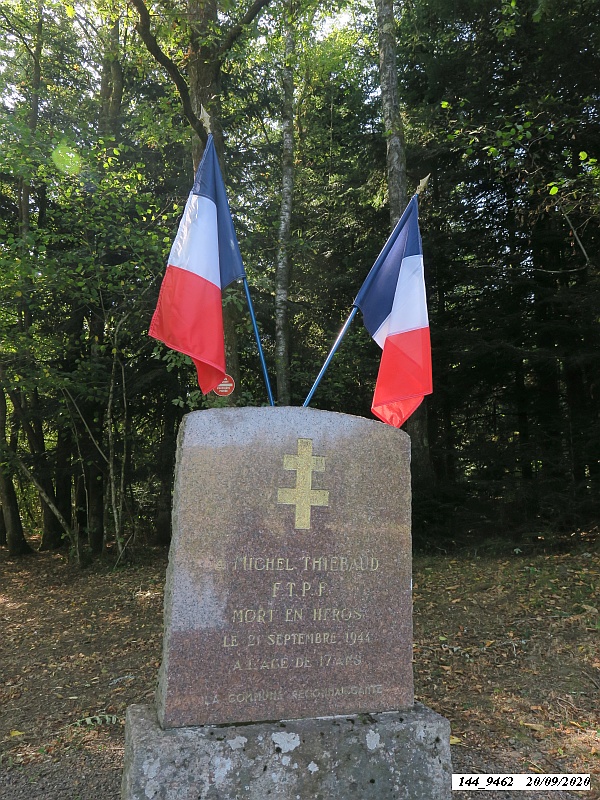 Le 21 septembre 1944, sur la berge de l’étang du Rosbeck aux Champs Peloches à Belonchamp, un homme tombe sous les balles allemandes, Michel Thiébaud, 17 ans, jeune résistant qui avait participé à de nombreuses opérations contre l’occupant nazi, a payé de sa vie son repérage des emplacements des tirs allemands au lieu-dit Le Raddon.