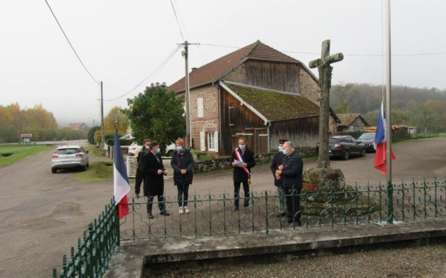 Encore une fois en raison du 2ème confinement, la cérémonie s’est déroulée sans public et en respectant le protocole sanitaire. A la demande de Mr le Maire, au cours de son discours, une minute de silence a été respectée en hommage à tous les morts de toutes les guerres, mais également en hommage aux dernières victimes du terrorisme sur notre territoire : 3 personnes assassinées dans la basilique Notre Dame de Nice et le professeur d’histoire sauvagement décapité pour avoir voulu enseigner le droit à la laïcité et la liberté d’expression en France. Les gerbes et bouquets ont ensuite été déposés au pied du monument.